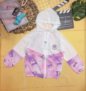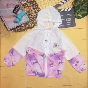 Chất liệu vải mềm mại, nhẹ nhàng, phù hợp cho các bé mặc khi thời tiết mát mẻ. Áo có thiết kế mũ liền, giúp bảo vệ đầu bé khỏi gió lạnh. Đặc biệt, áo còn có khóa kéo tiện lợi, giúp bé dễ dàng mặc và tháo ra. Đây là lựa chọn hoàn hảo cho các bé yêu thích Kuromi và phong cách dễ thương.