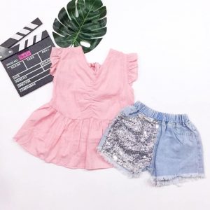 Đặt mua Bộ Áo peplum bé gái xinh xắn
