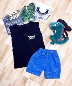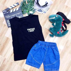 Bộ jean ba lỗ bé trai